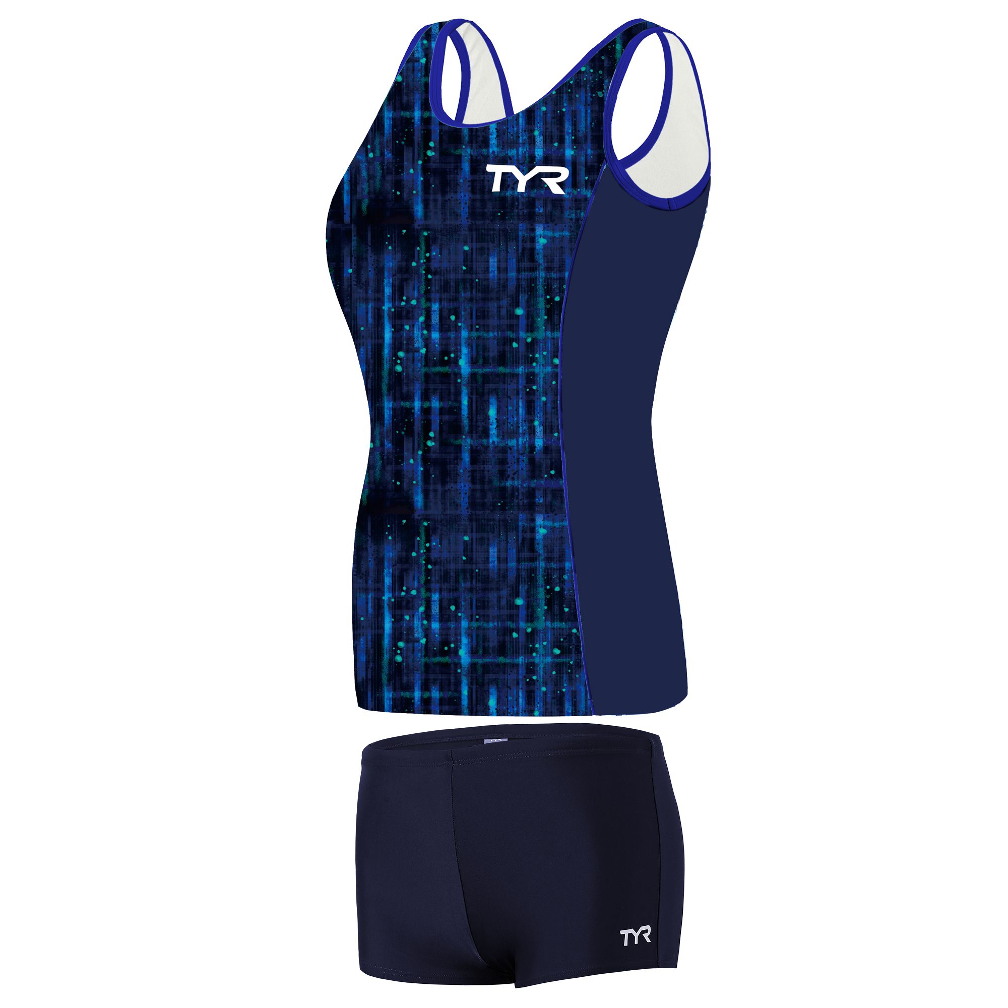 TYR两件套装女士泳衣采用TYR最耐用的高旦纤维和创新的圆形针织构造,将尼龙的强度和色牢度与氨纶舒适性结合在一起。U字型背部使阻力减到最低,腿部剪裁和胸前醒目的印花,非常适合希望在每次游泳期间划动怕走光的运动员。