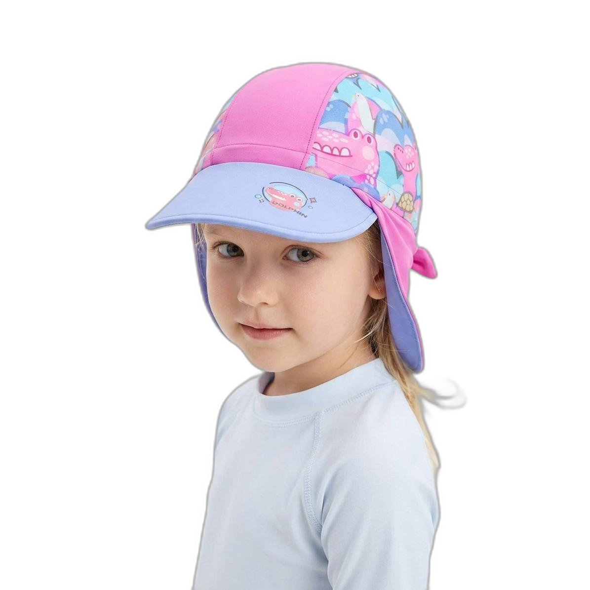 DOLPHIN 兒童防曬游泳帽,為寶貝提供全方位的防曬保護!這款泳帽採用高品質的UPF 50+防曬材質,有效阻擋紫外線,呵護幼兒嬌嫩的肌膚。帽身設計包含遮陽帽簷和加長脖子保護罩,不僅能保護臉部,更能保護頸部免受陽光傷害。 可愛的卡通圖案設計,讓孩子們愛不釋手!材質輕巧透氣,快乾舒適,即使長時間在水中活動也不怕悶熱。 無論是海邊玩沙、游泳池嬉戲、還是水上樂園探險,DOLPHIN 泳帽都是您孩子夏日水上活動的最佳夥伴!請依照孩子的頭圍選擇合適的尺寸,讓寶貝盡情享受陽光與歡樂。