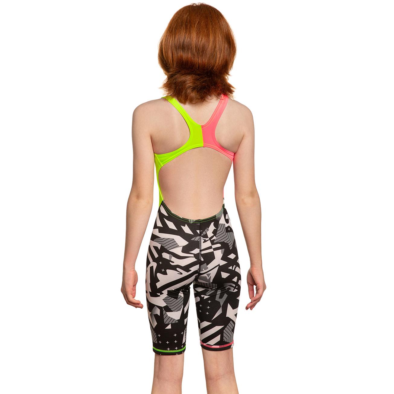 Mad Wave兒童運動連體泳衣 PBT A3搭配及膝短褲,非常適合長時間鍛煉。該型號由 訓練系列的抗氯面料製成。用這種面料製成的泳衣經久耐用,快干,長時間保持形狀,並且顏色非常耐用。訓練面料柔軟、有彈性、觸感舒適,其耐氯和耐鹽水性能是傳統面料的 20 倍,適合頻繁和長時間的鍛煉。滌綸泳衣還可以防止紫外線輻射。