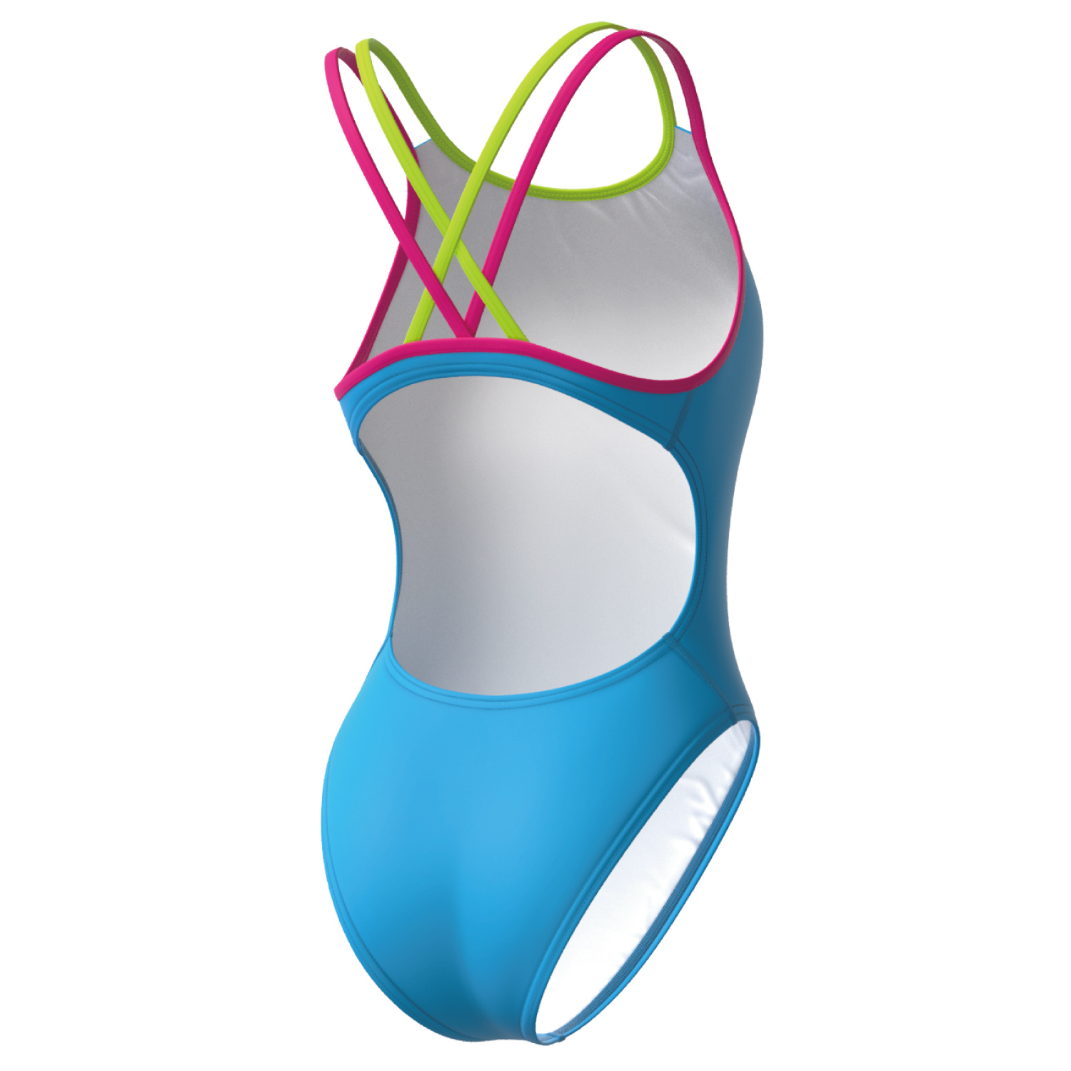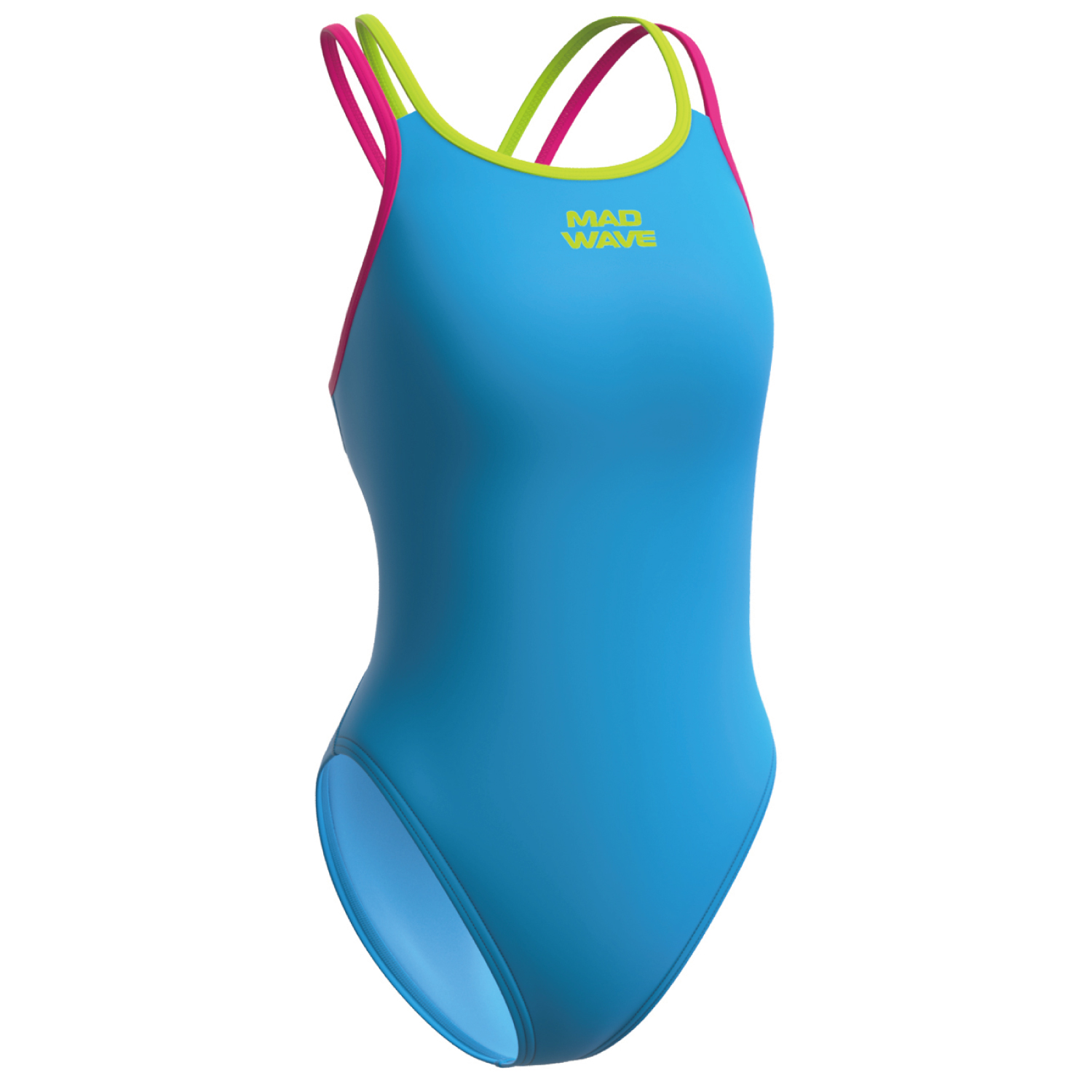 MAD WAVE 女童高叉泳衣,露背和纖細的雙肩帶提供了額外的手臂活動自由度和水中的輕盈感。中剪大腿適合任何身材,提供舒適和活動自由。泳衣的正面在襯裡上複製。由超耐用的耐氯織物製成。