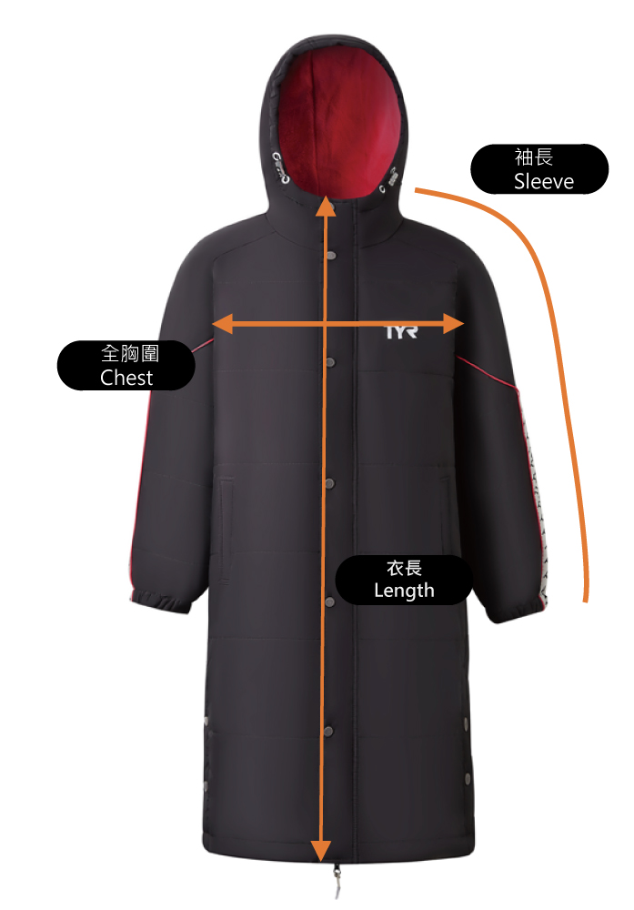 外層提供高度防水, 防風的全身保護, 裡布採用柔軟的保暖絨毛布料,加強保暖能力。前中全拉錬配備帽子款式,容易穿著,特設內袋,可放泳鏡泳帽等物品,另外附贈收納袋,方便攜帶。