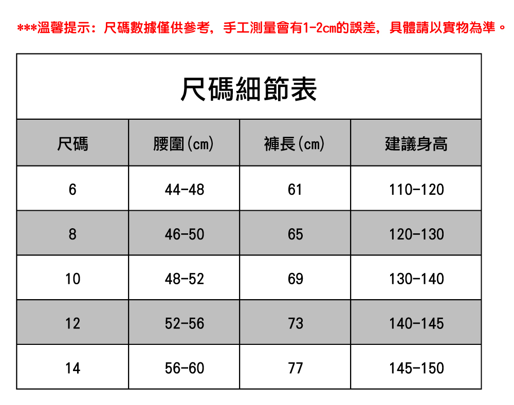 | 尺碼 | 6, 8, 10, 12, 14 |