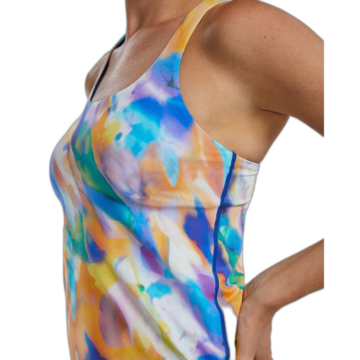 TYR女士跑步游泳運動 – Tempera 是一款多功能女士背心,采用了柔软舒适的Solé面料,并且具有抗氯、UPF50+的防晒保护、防起球和环保等特性。其设计包括固定交叉背带、挖空领口、可拆卸胸垫,以及尽量减少缝线和绑带。它提供了中等支撑,尺