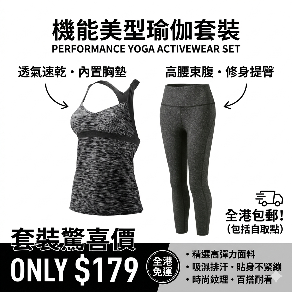 高腰設計好實用,做運動嗰陣唔使擔心褲頭跌低,背心長度啱啱好,好搭配。